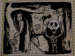 Siirtymät on vaikeita. Tussipiirros, digieditointi.