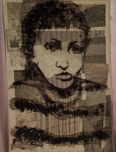 hippermanni KeskittymisilmeCourage Hope 9.3.2026 Omassa kuplassa on hyvä olla. Tussipiirros/mustemaalaus, paperiharso, kierrätyspahvi.