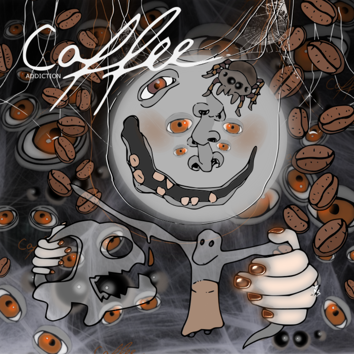 Vahva renki, heikko isäntä. Tussipiirros, digieditointi.Kofeiiniaddiktio