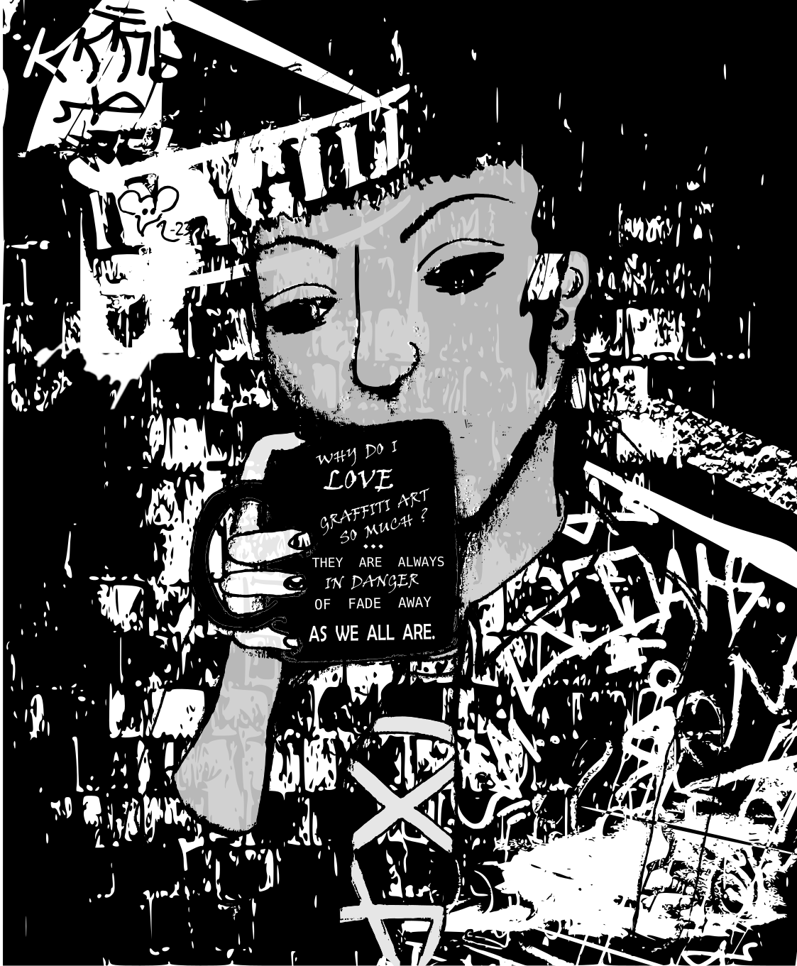 Tavallaan se on aika kaunista ettei mikään ole ikuista. Tussipiirros, digieditointi.Vaarassa haihtua